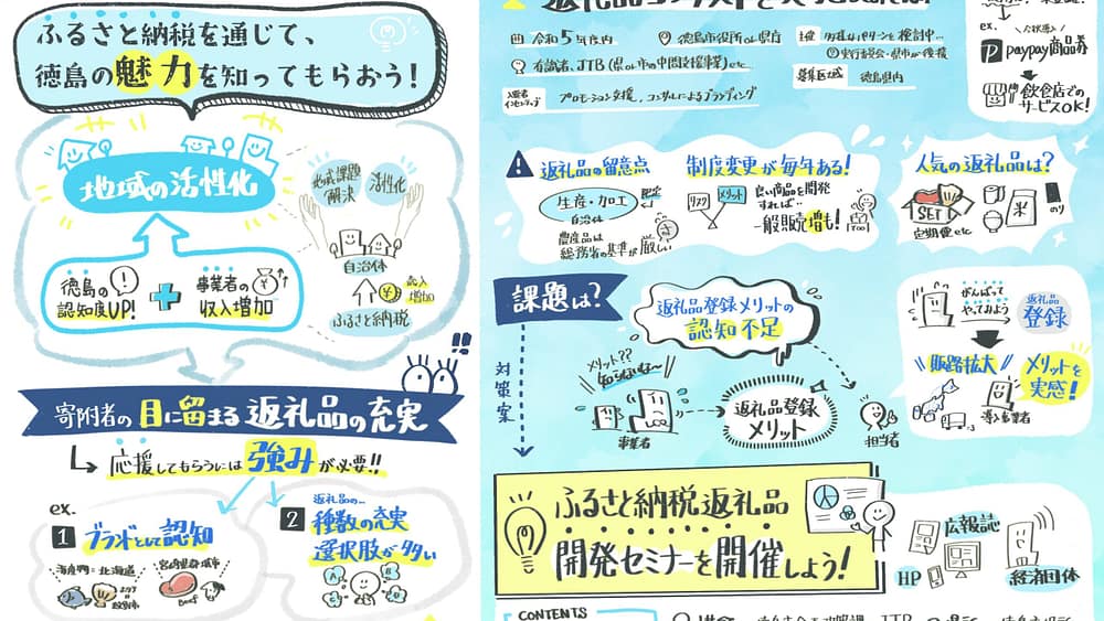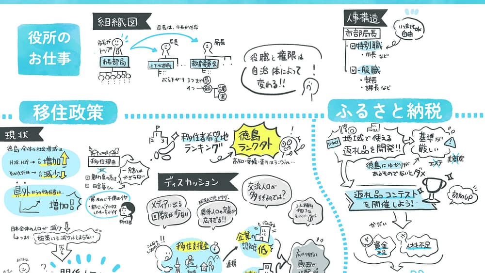 内容をグラレコでまとめることで、関係者が一目で現状を把握できるようになります。