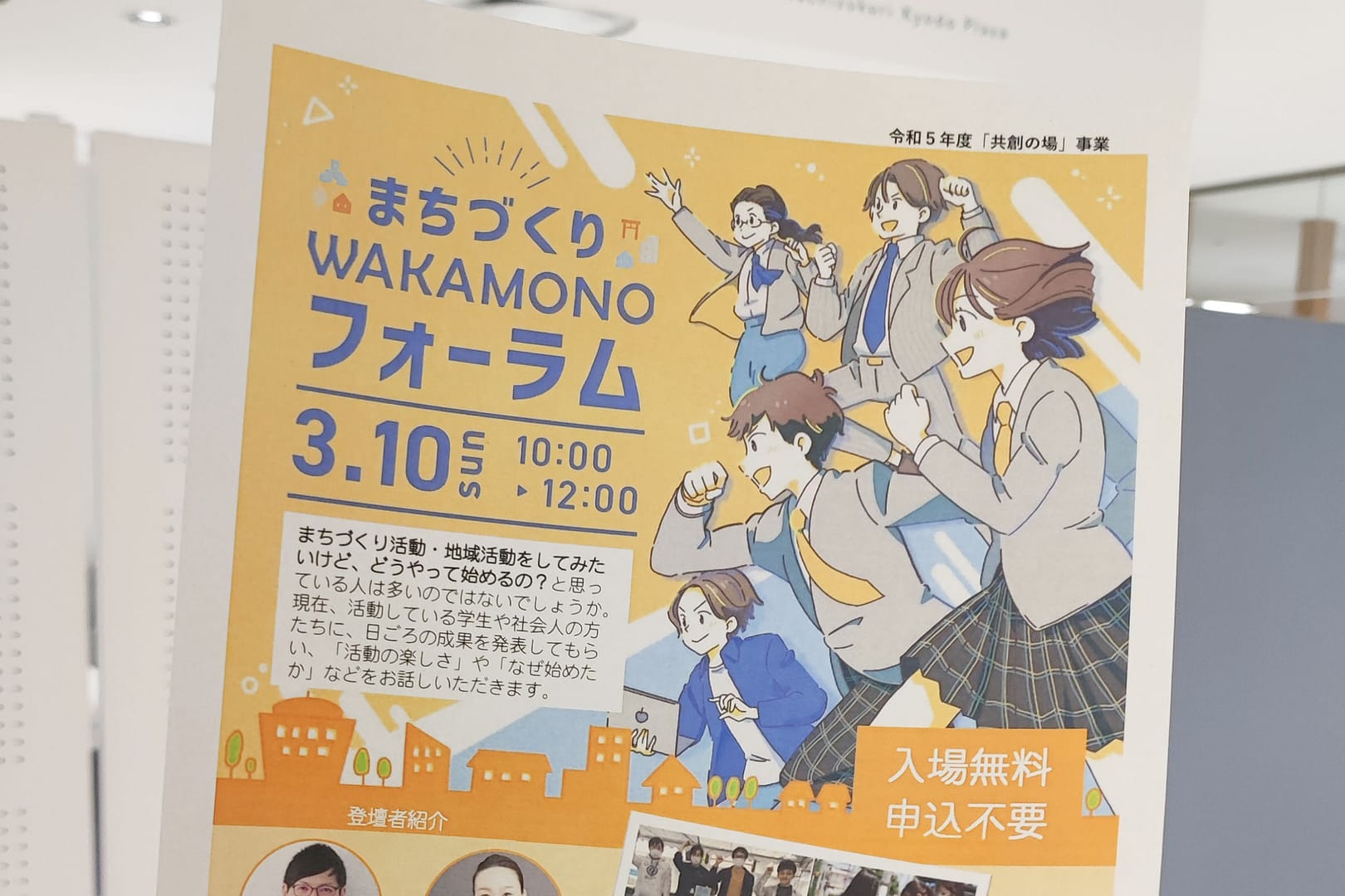 2024年3月8日に開催された徳島市とまちづくり協働プラザ主催の「とくしまWAKAMONOフォーラム」のチラシイラストを作成させて頂きました!